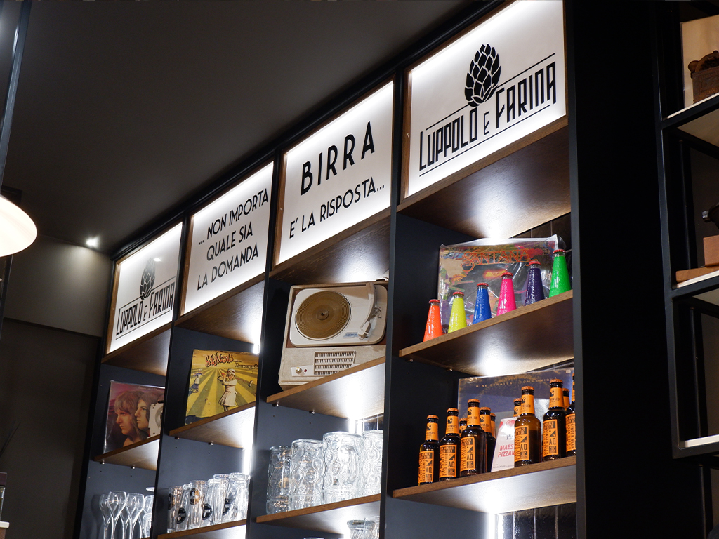 Dall’atmosfera briosa ed accogliente Luppolo e Farina è l’ambiente perfetto per una serata in compagnia. Il richiamo alla tradizione attraverso ogni sfaccettatura di arredamento, esalta quelli che sono gli ingredienti genuini del mondo della pizza.